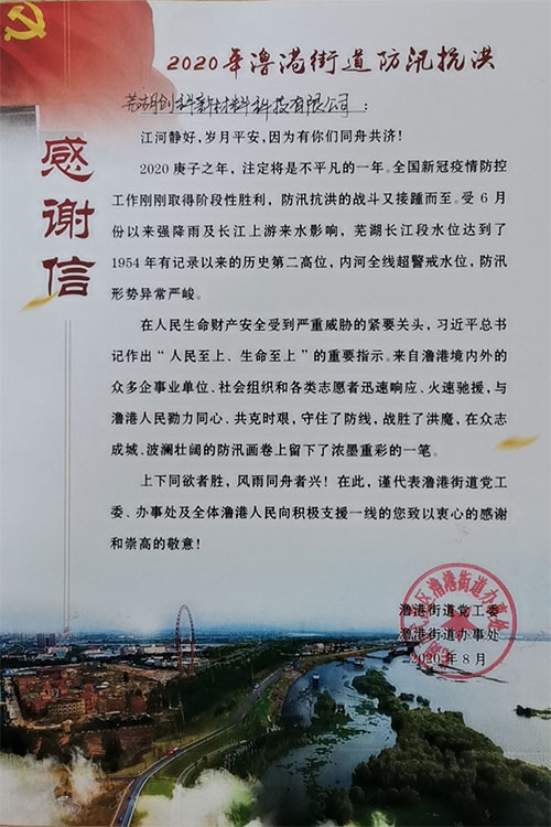 疫情發(fā)生后,公司積極捐贈向社會捐贈物資,同時組織好員工防疫,企業(yè)復(fù)工復(fù)產(chǎn)等,汛期公司組織抗洪小分隊,積極加入抗洪搶險、支援一線。